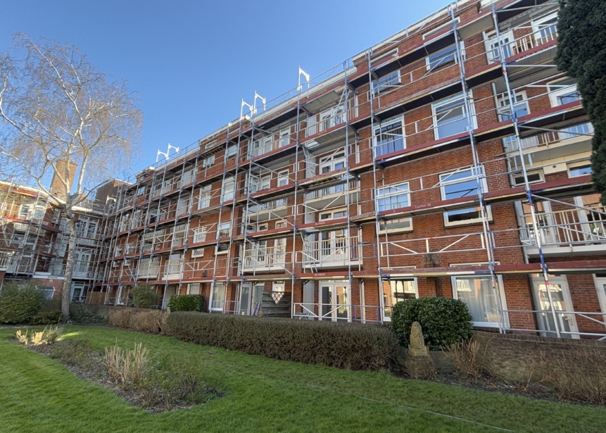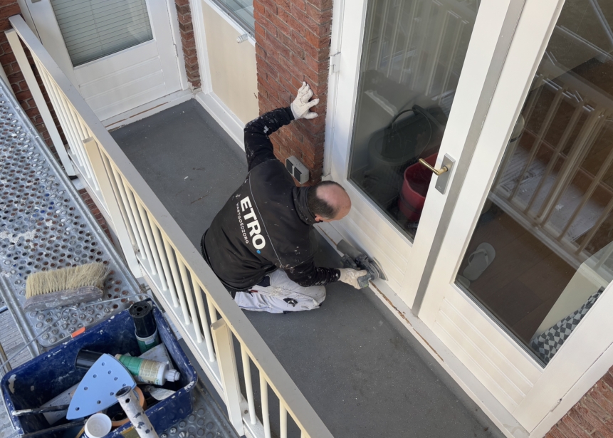 Daarnaast vernieuwen we het voegwerk van de raamdorpelstenen aan de voorzijde en werken we aan het reinigen en conserveren van de kunststof kozijnen. Het buitenschilderwerk is in volle gang, en voor extra veiligheid en stabiliteit vervangen we de bevestigingen van de balkons aan de voorzijde.
