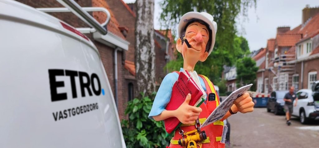 Voor Pré Wonen voert Etro verduurzamingswerkzaamheden uit in diverse straten in Heemstede. Een bewoner heeft onze uitvoerder John van den Hazel blij verrast met een eigen beeld. Uiteraard kreeg deze meteen een mooie plek in de uitvoerderskeet. Daarna verhuist de mascotte mee naar een volgende opdracht. Bedankt voor deze blijk van waardering!
