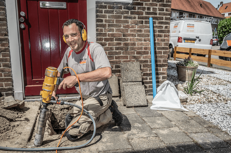 Kim: “Het project zou twee jaar duren, maar het loopt erg voorspoedig. Toen het project werd opgestart zou in elke woning een waterput geplaatst worden, waarvoor de vloer in de woning open moest. Gaandeweg bleek een put niet overal nodig en plaatsen wij regelmatig mantelbuizen in plaats van een waterput. Hierdoor wordt veel tijdwinst behaald.”